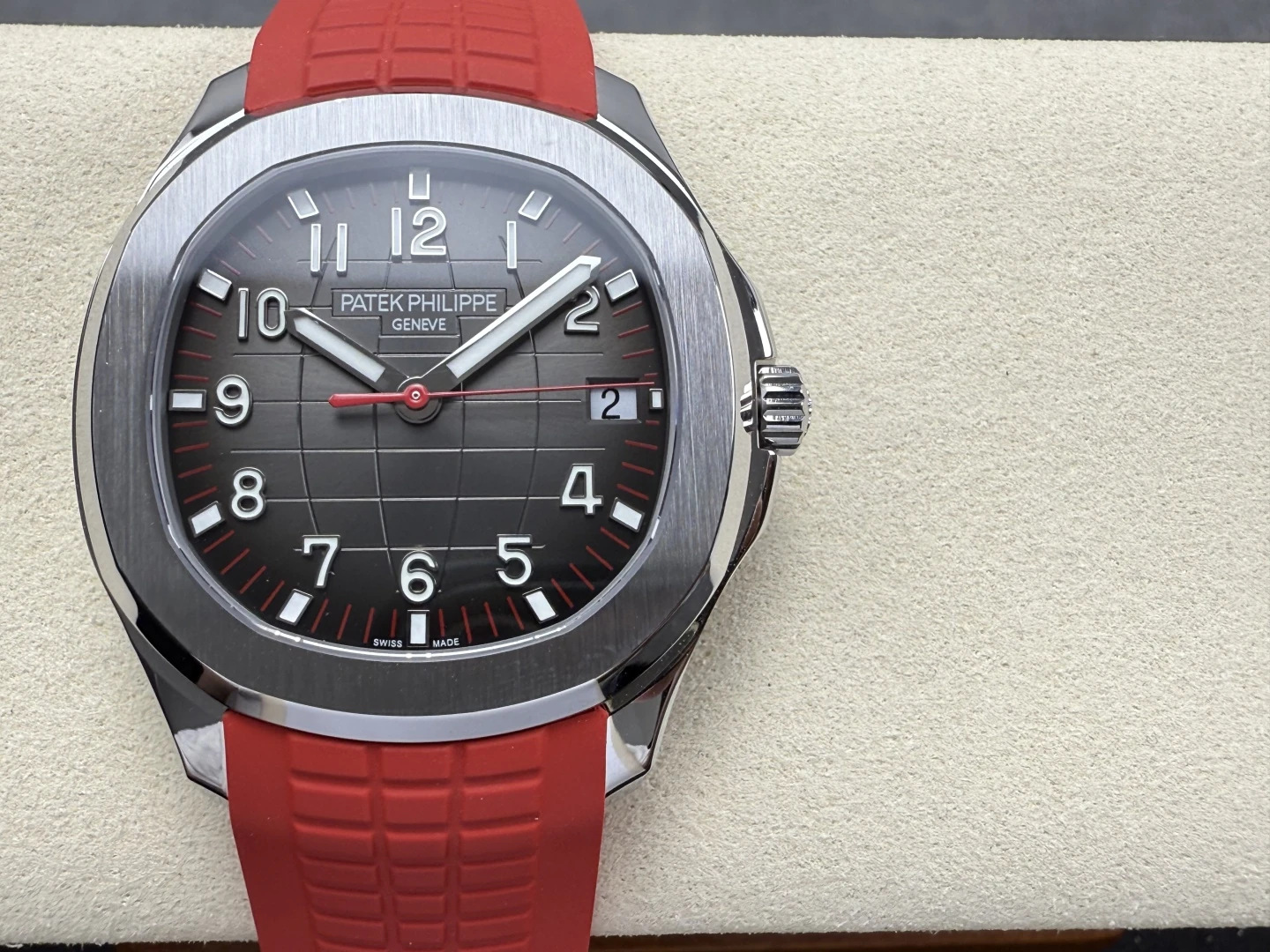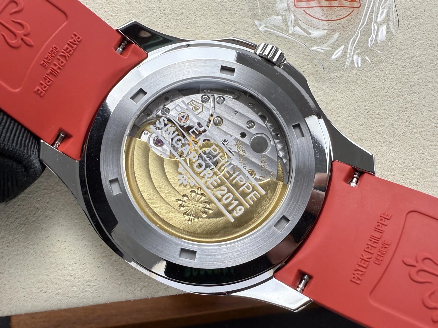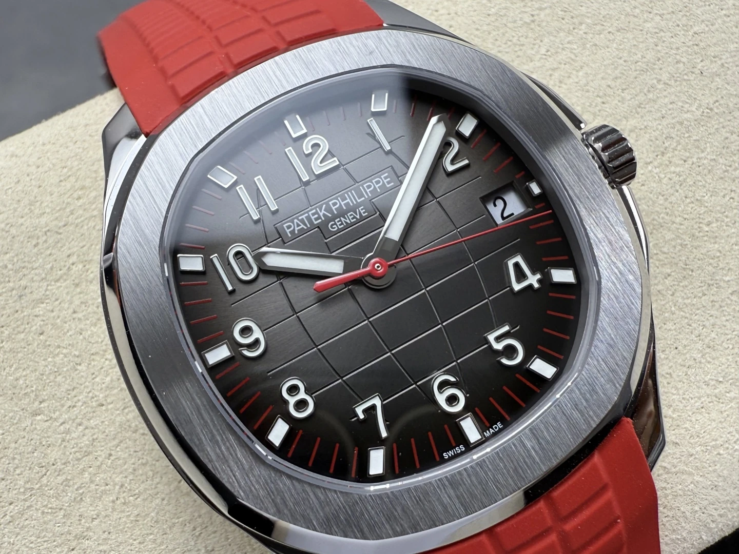 ĐỒNG HỒ PATEK PHILIPPE AQUANAUT 5167 REP 11 MẶT XÁM TINH CHỈNH DÂY CAO SU ĐỎ AUTOMATIC 40MM