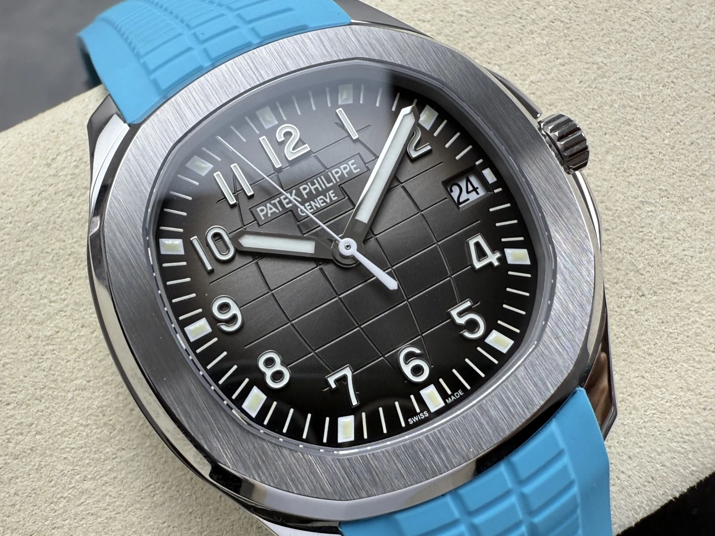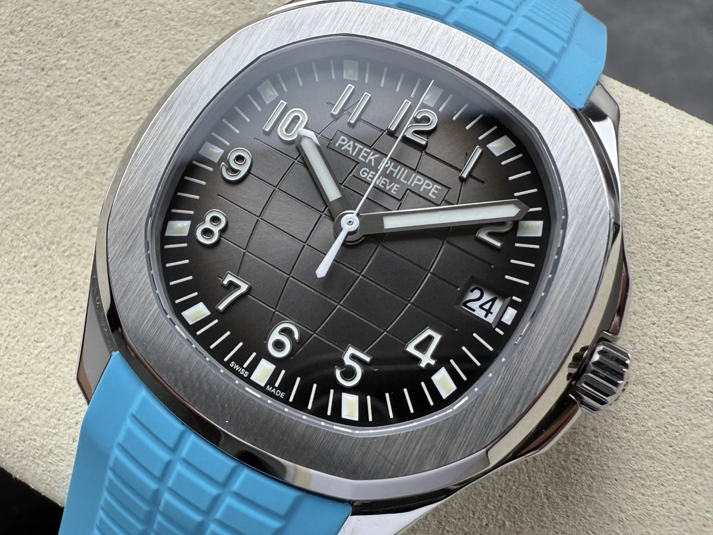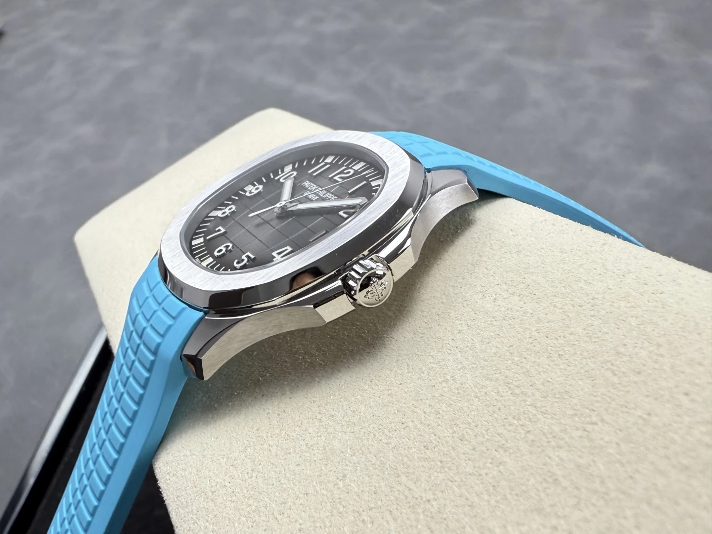 Đặt mua ĐỒNG HỒ PATEK PHILIPPE AQUANAUT 5167 REPLICA MẶT XÁM TINH CHỈNH DÂY CAO SU XANH 40MM
