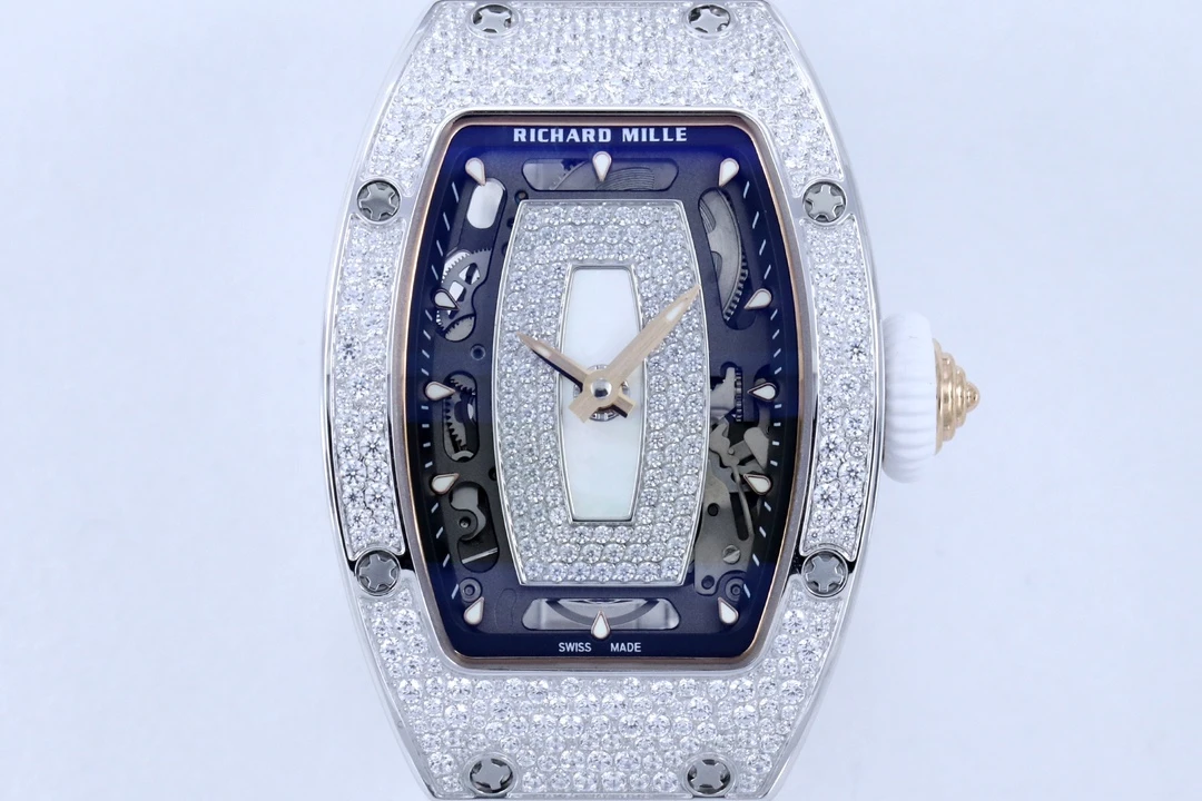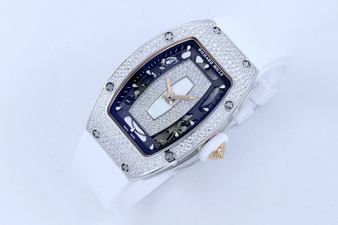 RICHARD MILLE RM07-01 KNOCK OFF WATCHES RHINESTONE CASE WHITE DIAL RUBBER STRAP ZF FACTORY 36MM