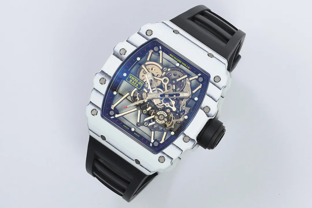 Đặt mua RICHARD MILLE RM35-01 LUXURY REPLICA WATCHES WHITE CARBON CASE BLACK RUBBER STRAP AUTOMATIC ZF FACTORY 49.9mm x 43mm